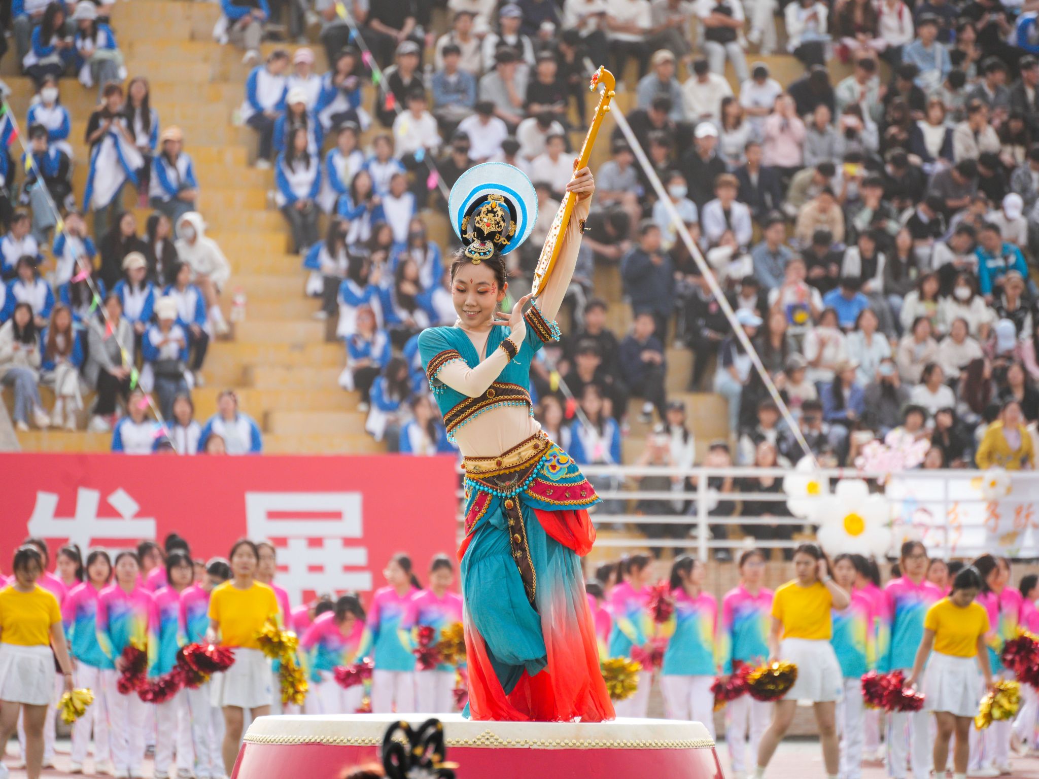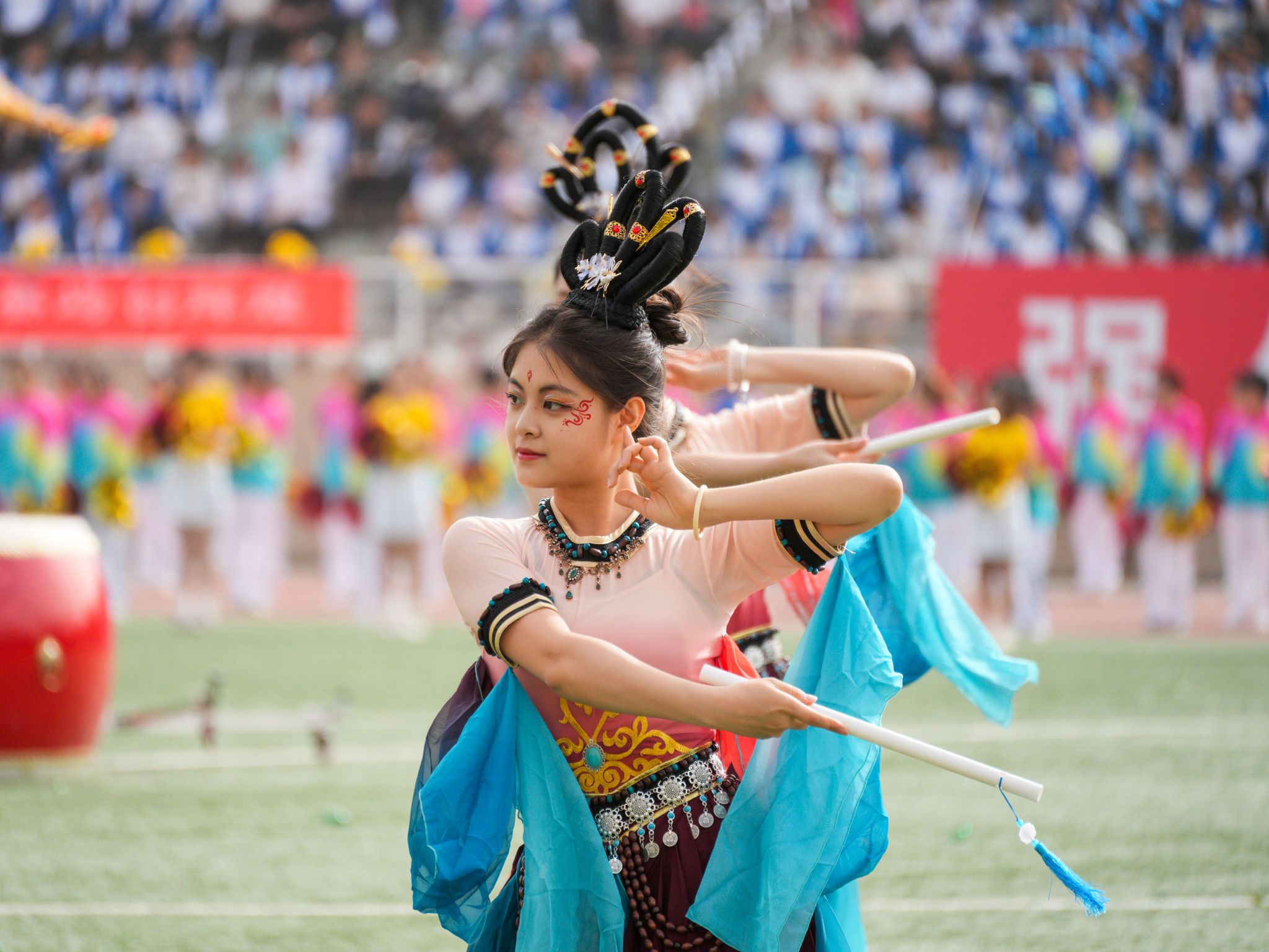 特色表演環(huán)節(jié),1200余名學(xué)子陸續(xù)上場(chǎng),帶來(lái)《舞韻中華》《青春飛揚(yáng)》《體舞芳華》《逐光環(huán)影》《中華武術(shù)》《祝福祖國(guó)》等團(tuán)體操、舞蹈、武術(shù)表演,他們笑容燦爛、活力四射,以?xún)?yōu)美的舞姿為田徑運(yùn)動(dòng)會(huì)加油喝彩。