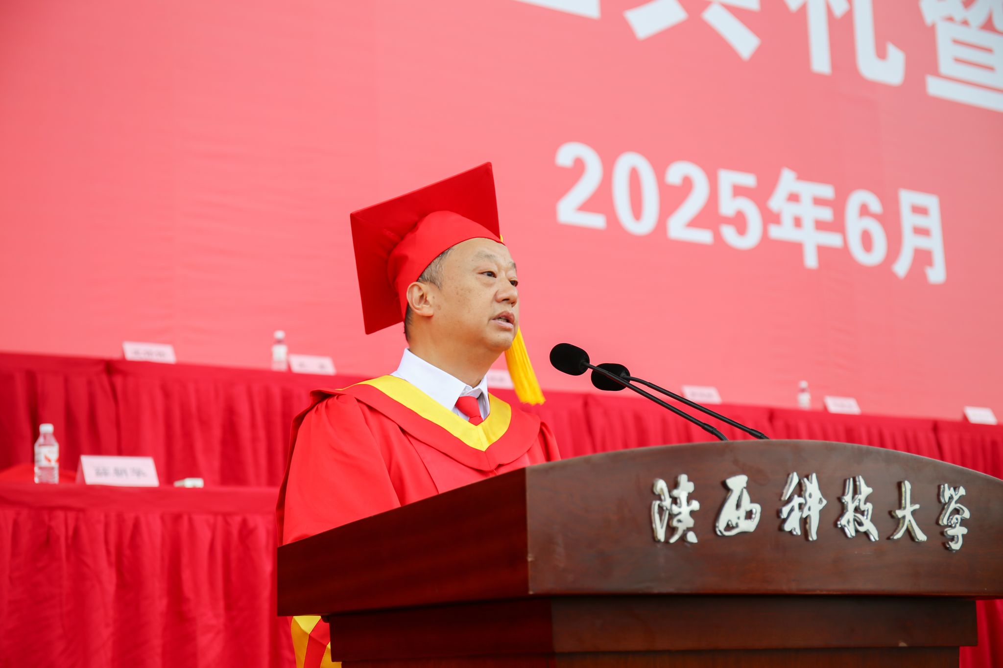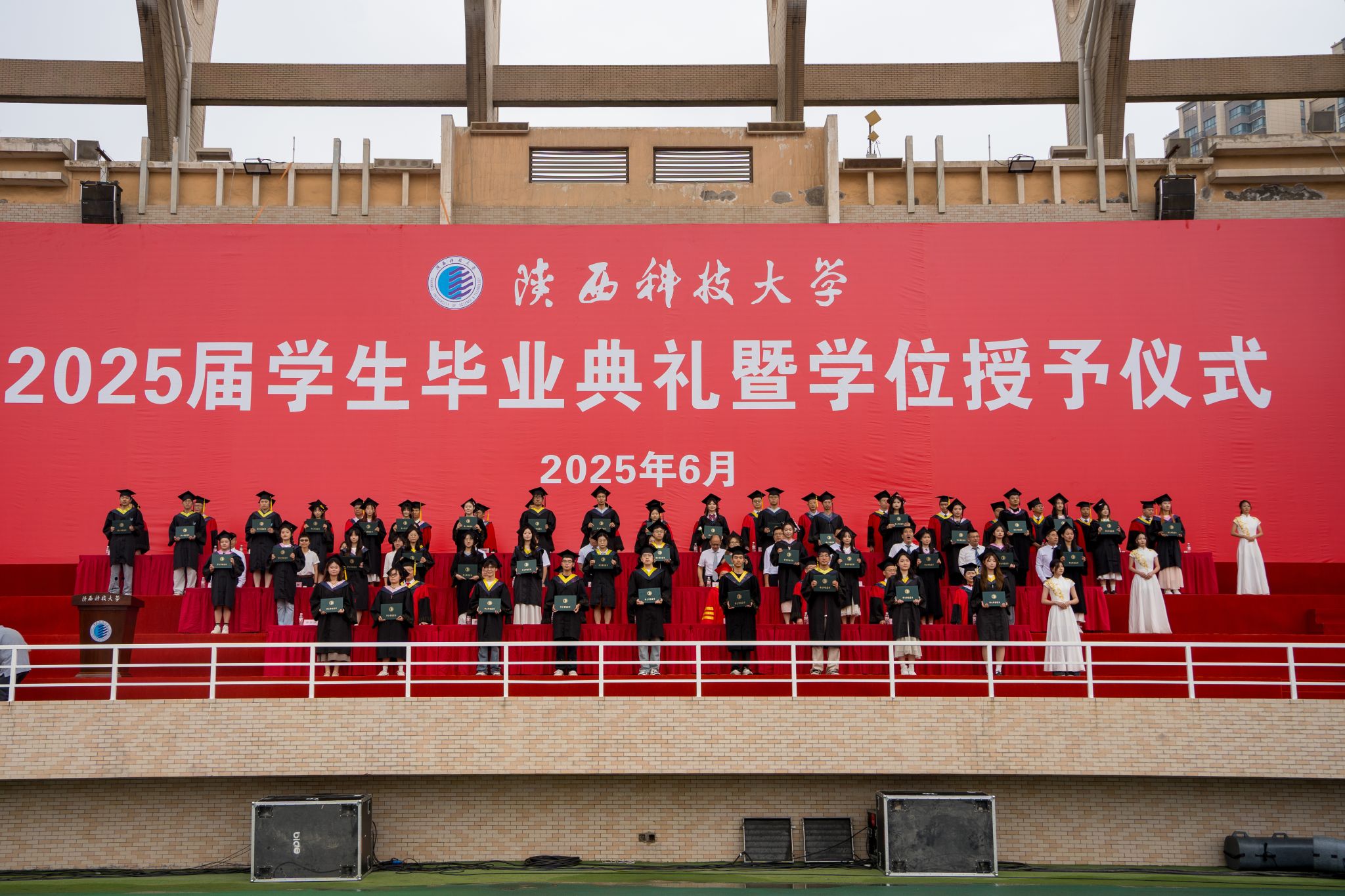 副校長(zhǎng)陸趙情宣讀“陜西科技大學(xué)關(guān)于授予2025屆博士、碩士、學(xué)士學(xué)位的相關(guān)決議”及“陜西科技大學(xué)關(guān)于批準(zhǔn)2025年優(yōu)秀碩士學(xué)位論文的決定”。學(xué)校授予66名研究生博士學(xué)位、1585名研究生碩士學(xué)位、19名國(guó)際研究生碩士學(xué)位、4547名本科生學(xué)士學(xué)位;批準(zhǔn)120篇學(xué)位論文為優(yōu)秀碩士學(xué)位論文。