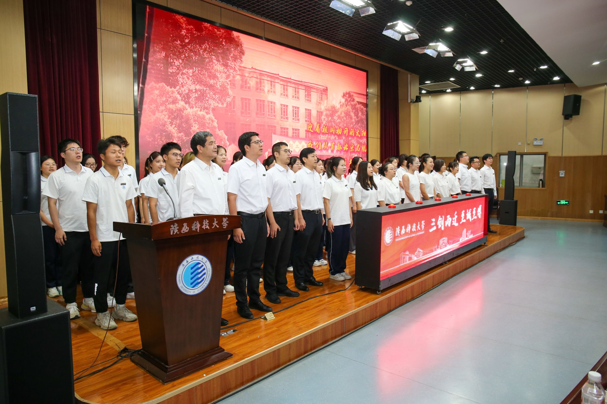 6月26日,慶祝陜西科技大學(xué)建校67周年暨校歌《遠(yuǎn)航》(重制版)發(fā)布儀式在圖書館學(xué)術(shù)報告廳舉行,師生代表、離退休教師及校友代表等500余人齊聚一堂,用歌聲為校慶獻(xiàn)禮。儀式由黨委宣傳部部長李萌主持。