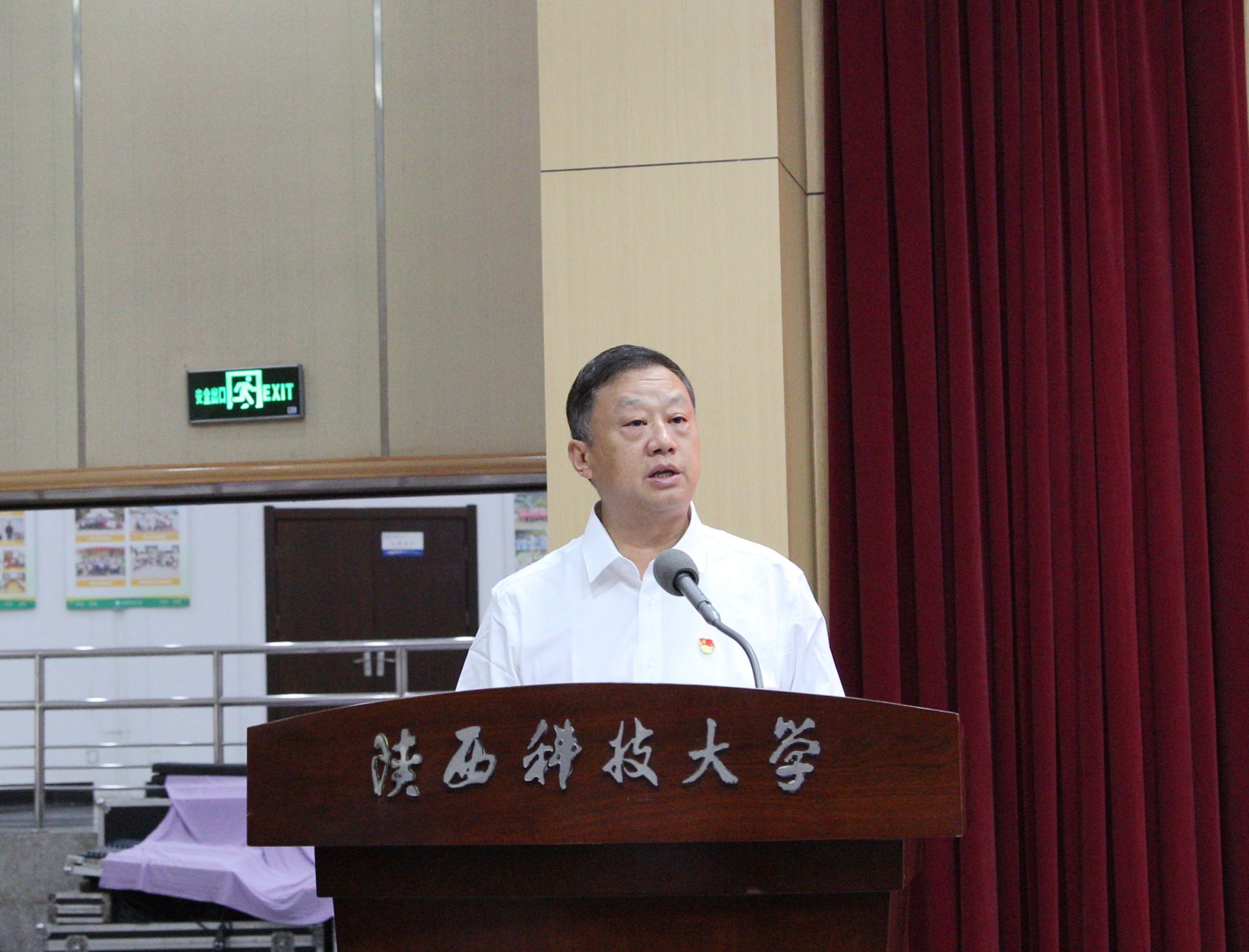 樊建武代表學校黨委向全校共產(chǎn)黨員致以節(jié)日問候,向受表彰的先進集體和優(yōu)秀個人表示熱烈祝賀,向各級黨組織和廣大黨員在學校事業(yè)發(fā)展中的辛勤工作并取得優(yōu)異成績表示感謝,號召廣大師生向受表彰的集體和個人學習,努力在“雙一流”建設中再創(chuàng)佳績。他指出,中國共產(chǎn)黨自成立以來,始終堅守為中國人民謀幸福、為中華民族謀復興的初心使命,團結帶領中國人民矢志不渝、不懈奮斗,以彪炳史冊的輝煌業(yè)績生動詮釋了偉大建黨精神。67年來,一代又一代陜科大人始終聽黨指揮、跟黨走,自覺弘揚偉大建黨精神,與黨和國家、與民族和人民同呼吸、共命運,為國家經(jīng)濟社會發(fā)展作出了重要貢獻。
