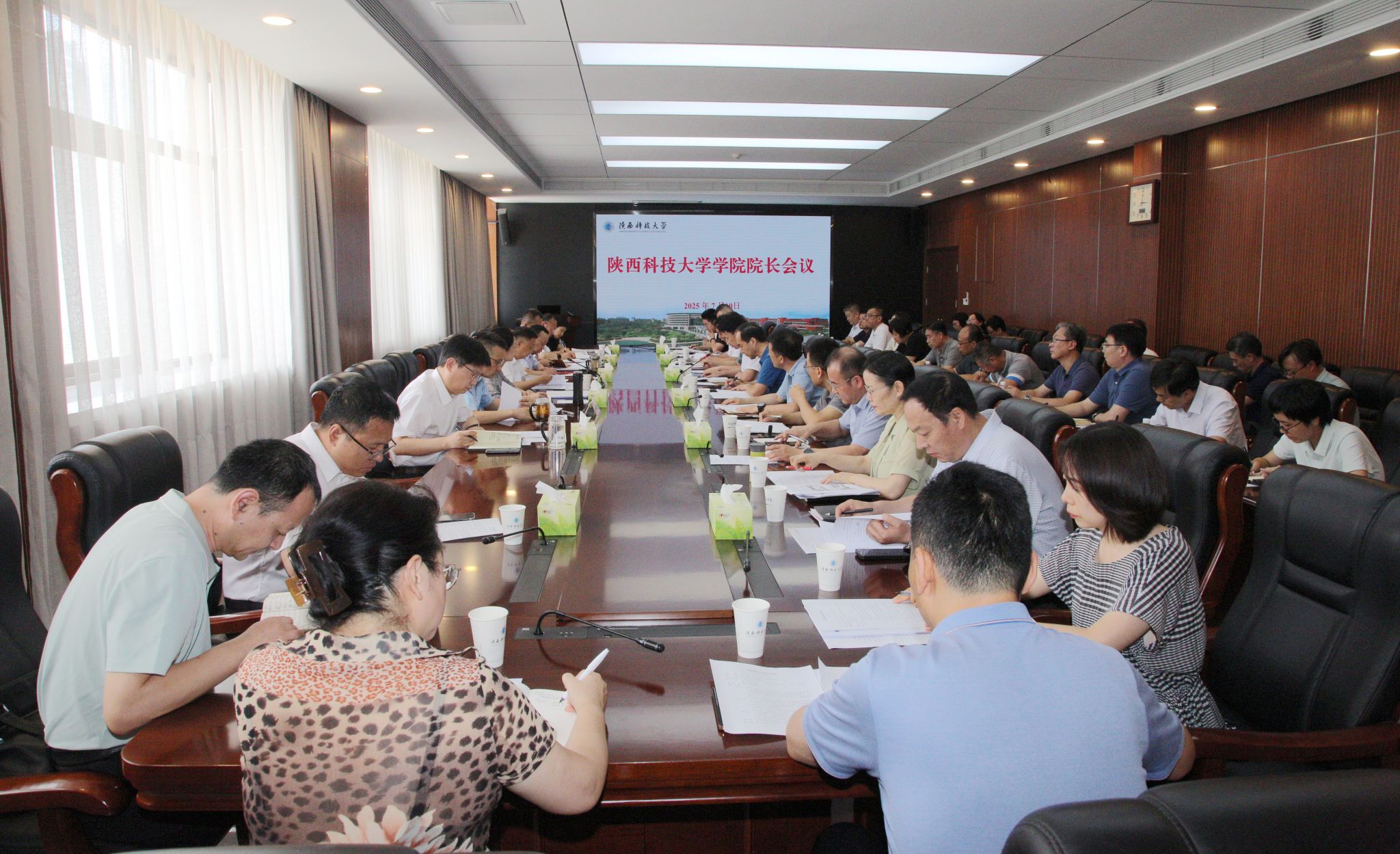 7月10日,陜西科技大學(xué)召開2025年第2次學(xué)院院長(zhǎng)會(huì)議,聽取部分學(xué)院和部門第二季度工作推進(jìn)情況,分析工作形勢(shì),安排部署暑期和下半年重點(diǎn)工作任務(wù)。校長(zhǎng)黃劍鋒主持會(huì)議并講話,黨委副書記王道安、羅瑩、李學(xué)軍,副校長(zhǎng)費(fèi)貴強(qiáng)、黃海峙、陸趙情、馬力出席會(huì)議并進(jìn)行點(diǎn)評(píng)。相關(guān)職能部門負(fù)責(zé)人、各學(xué)院院長(zhǎng)參加會(huì)議。