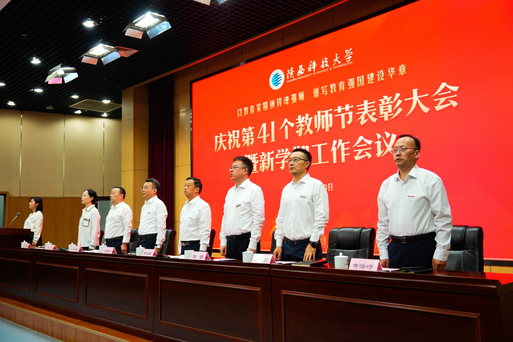 9月10日,陜西科技大學(xué)召開慶祝教師節(jié)表彰大會(huì)暨新學(xué)期工作會(huì)議,學(xué)習(xí)習(xí)近平總書記給全國特崗教師代表的重要回信精神,表彰2024至2025學(xué)年做出突出貢獻(xiàn)的優(yōu)秀教師,總結(jié)回顧上半年工作、安排部署下半年重點(diǎn)任務(wù)。黨委書記樊建武、校長黃劍鋒出席并講話,黨委副書記王道安宣讀表彰決定和表彰名單,全體在家校領(lǐng)導(dǎo)出席會(huì)議。會(huì)議由副校長馬力主持。