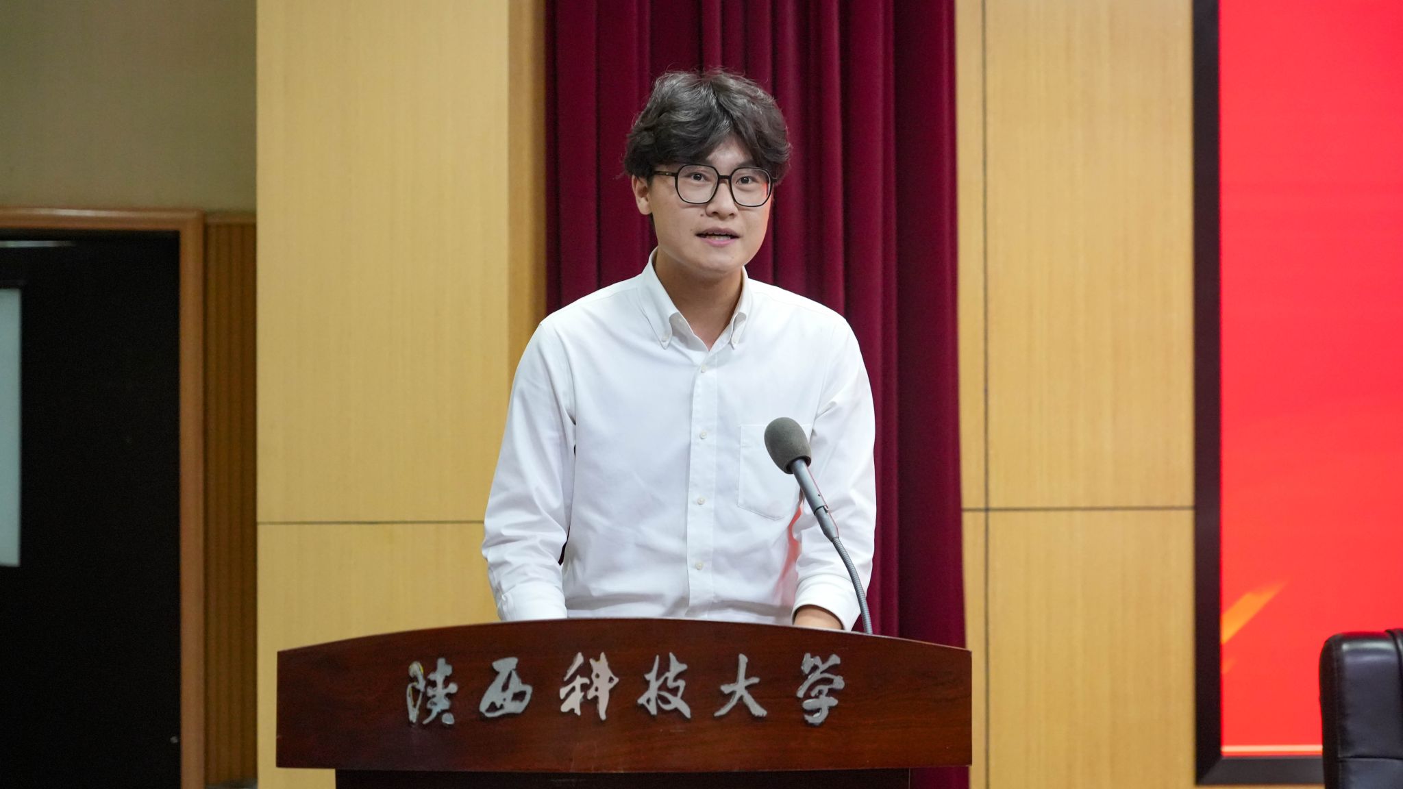 設(shè)計(jì)與藝術(shù)學(xué)院2022級(jí)本科生郭燁凡作為學(xué)生代表向全體老師送上節(jié)日祝福,機(jī)電工程學(xué)院教師于旻作為教師代表發(fā)言。