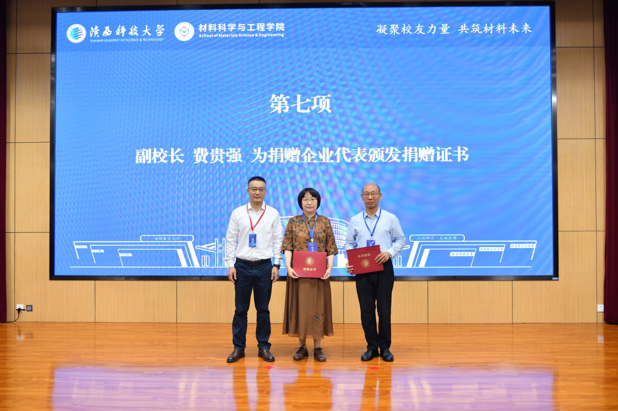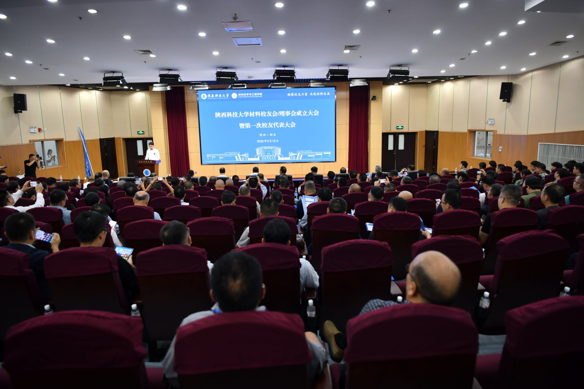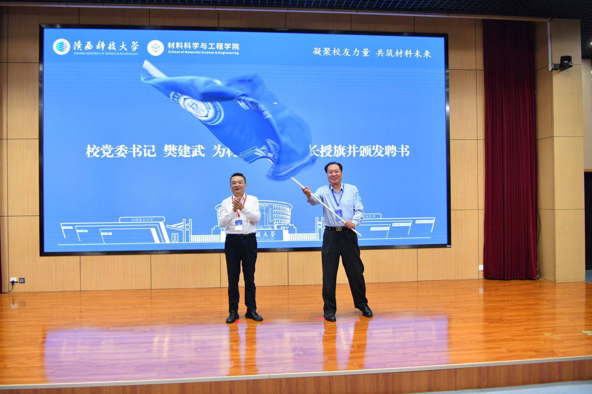 9月13日上午,陜西科技大學(xué)材料校友會(huì)/理事會(huì)成立大會(huì)暨第一次校友代表大會(huì)在學(xué)校圖書館學(xué)術(shù)報(bào)告廳舉行。黨委書記樊建武為首屆會(huì)長(zhǎng)授會(huì)旗并頒發(fā)聘書,校長(zhǎng)、校友總會(huì)會(huì)長(zhǎng)黃劍鋒出席大會(huì)并講話,副校長(zhǎng)費(fèi)貴強(qiáng)為捐贈(zèng)企業(yè)代表頒發(fā)捐贈(zèng)證書。材料科學(xué)與工程學(xué)院院長(zhǎng)楊海波主持大會(huì)。