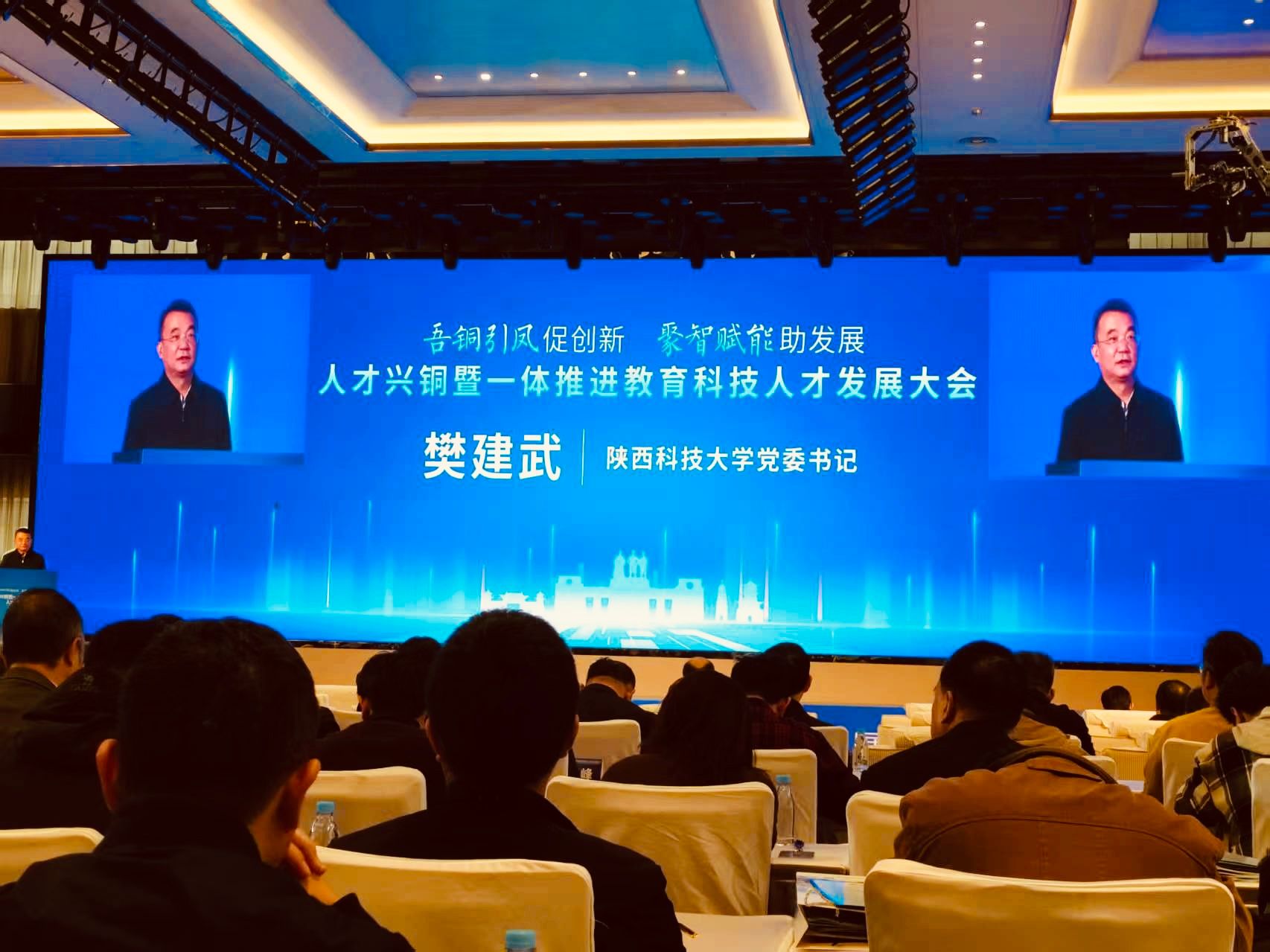 11月7日,人才興銅暨一體推進教育科技人才發(fā)展大會在西咸國際會議中心舉行。陜西科技大學黨委書記樊建武,副校長費貴強一行受邀參加。