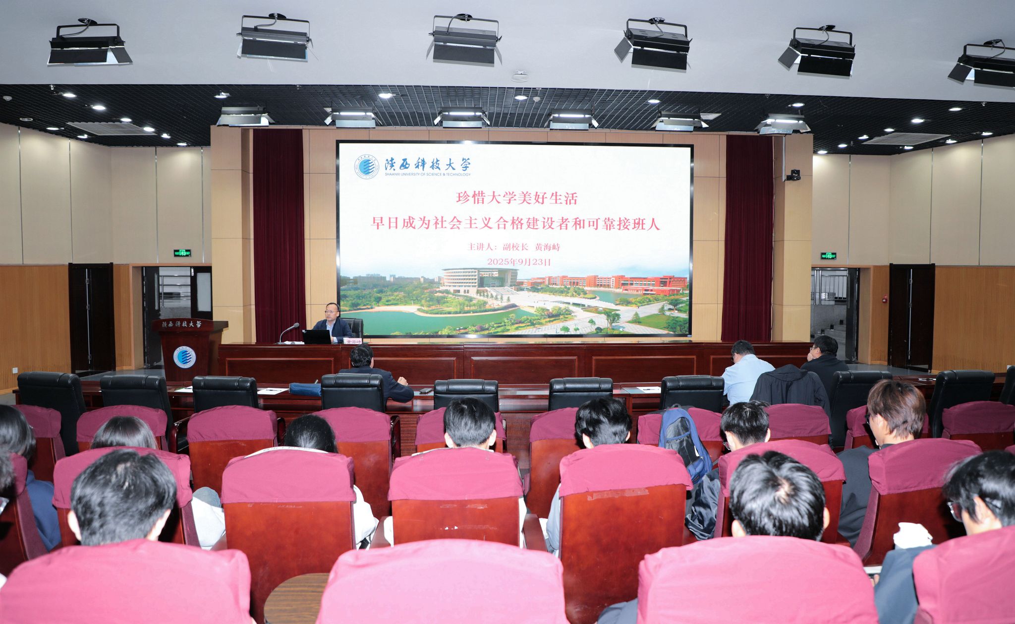 9月23日,陜西科技大學(xué)副校長黃海峙以“珍惜大學(xué)美好生活,早日成為社會(huì)主義合格建設(shè)者和可靠接班人”為題,為2025級(jí)新生講授思政課。