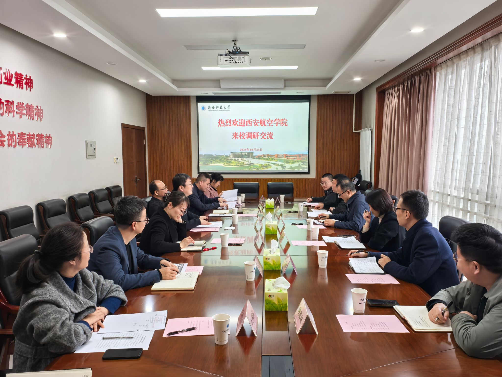 10月24日下午,西安航空學(xué)院發(fā)展規(guī)劃處處長楊少斌帶領(lǐng)由人事處、教務(wù)處、學(xué)科辦、科技處等部門6人組成的調(diào)研組,來我校進(jìn)行調(diào)研交流。學(xué)校相關(guān)單位有關(guān)同志參加座談會(huì)。發(fā)展規(guī)劃處處長龐博主持會(huì)議。