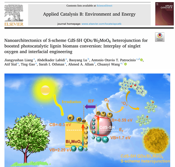 木質(zhì)素作為自然界中唯一的可再生芳香族資源,其高效轉(zhuǎn)化一直是生物質(zhì)利用領(lǐng)域的研究熱點(diǎn),但Cβ-O鍵的高穩(wěn)定性制約轉(zhuǎn)化效率?;诖?,我校王傳義教授團(tuán)隊(duì)開發(fā)了一種S-構(gòu)型異質(zhì)結(jié)的光催化劑(CdS-SH QDs/Bi2MoO6),通過界面Bi-S鍵增強(qiáng)載流子分離,激活單線態(tài)氧(1O2)精準(zhǔn)攻擊木質(zhì)素Cβ-O鍵,實(shí)現(xiàn)了木質(zhì)素生物質(zhì)的高效轉(zhuǎn)化。以PP-ol(2-苯氧基-1-苯基乙醇)為模型化合物,苯酚/苯乙酮產(chǎn)率達(dá)90%+;通過在自然環(huán)境下裂解從馬尾松提取的堿木質(zhì)素的,香蘭素產(chǎn)量較單一催化劑提升70倍。該工作為設(shè)計(jì)能夠在實(shí)際環(huán)境中有效解聚木質(zhì)素的光催化劑提供了新的視角。(原文鏈接:https://doi.org/10.1016/j.apcatb.2025.125092)