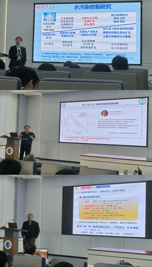 4月30日上午,應(yīng)我校環(huán)境科學(xué)與工程學(xué)院、趙進(jìn)才院士工作室、科技處、前沿院邀請(qǐng),清華大學(xué)朱永法教授、吉林大學(xué)李廣社教授、福州大學(xué)王緒緒教授做客我校,為學(xué)院師生作了系列“前沿科學(xué)報(bào)告”。報(bào)告會(huì)由環(huán)境學(xué)院學(xué)術(shù)院長(zhǎng)王傳義教授主持,學(xué)院相關(guān)教師和研究生參加了本次活動(dòng)。