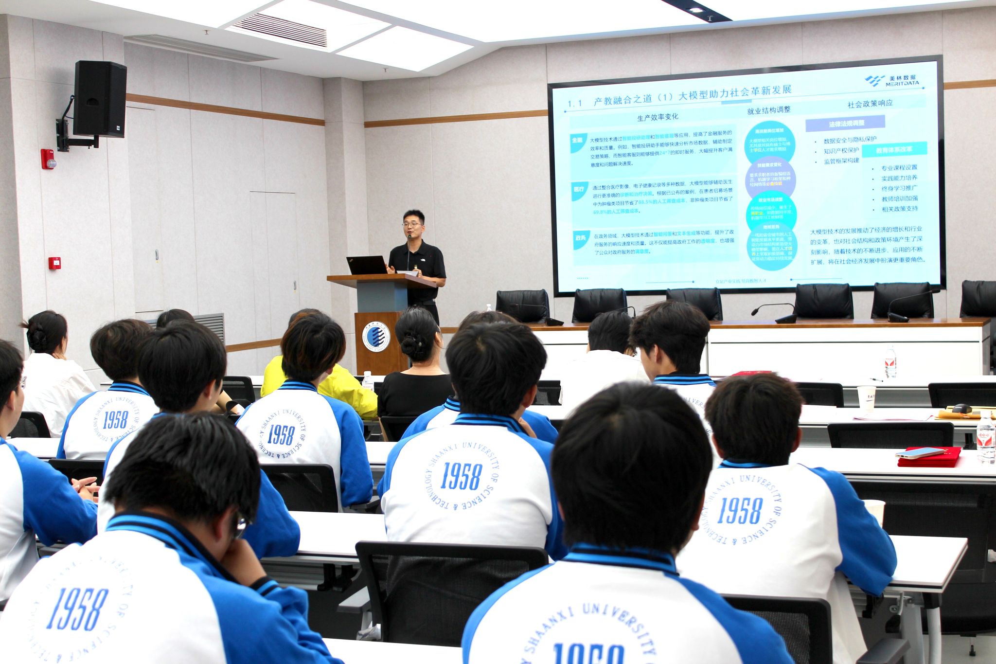 為深入貫徹落實(shí)國(guó)家數(shù)字經(jīng)濟(jì)發(fā)展戰(zhàn)略需求、全面提升教師與學(xué)生的數(shù)字技術(shù)應(yīng)用能力,落實(shí)學(xué)校七屆四次雙代會(huì)關(guān)于深化產(chǎn)教融合、科教融匯的部署,促進(jìn)信息技術(shù)與教育教學(xué)的深度融合,應(yīng)校教務(wù)處、經(jīng)濟(jì)與管理學(xué)院邀請(qǐng),5月23日下午在至誠(chéng)至博會(huì)議室,美林?jǐn)?shù)據(jù)技術(shù)股份有限公司數(shù)智研究院副院長(zhǎng)郭田奇做客我?!敖逃虒W(xué)論壇”,作題為“駕馭人工智能是人才培養(yǎng)的時(shí)代命題”的講座。會(huì)議由院長(zhǎng)助理邢戰(zhàn)雷主持,學(xué)院相關(guān)教師和數(shù)字經(jīng)濟(jì)專業(yè)全體本科生參加。