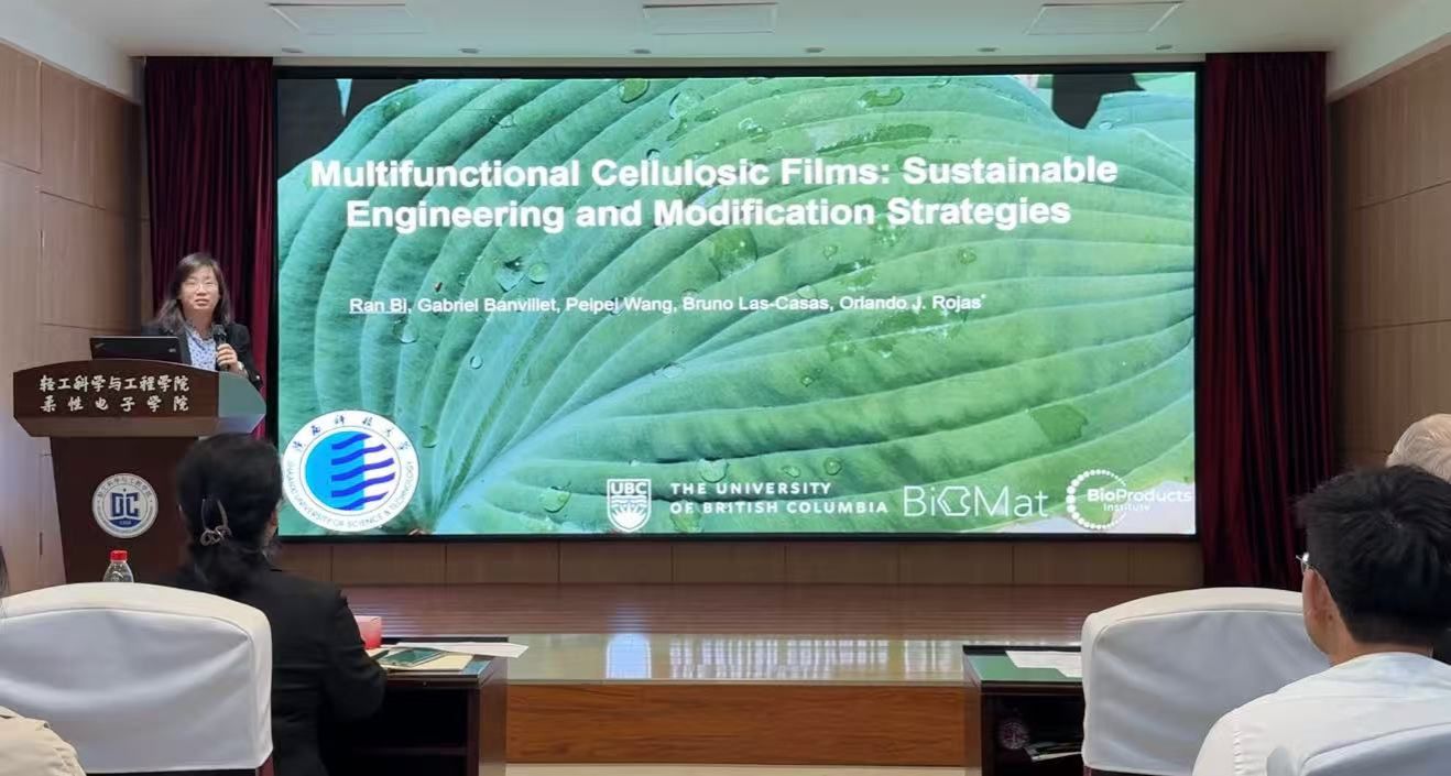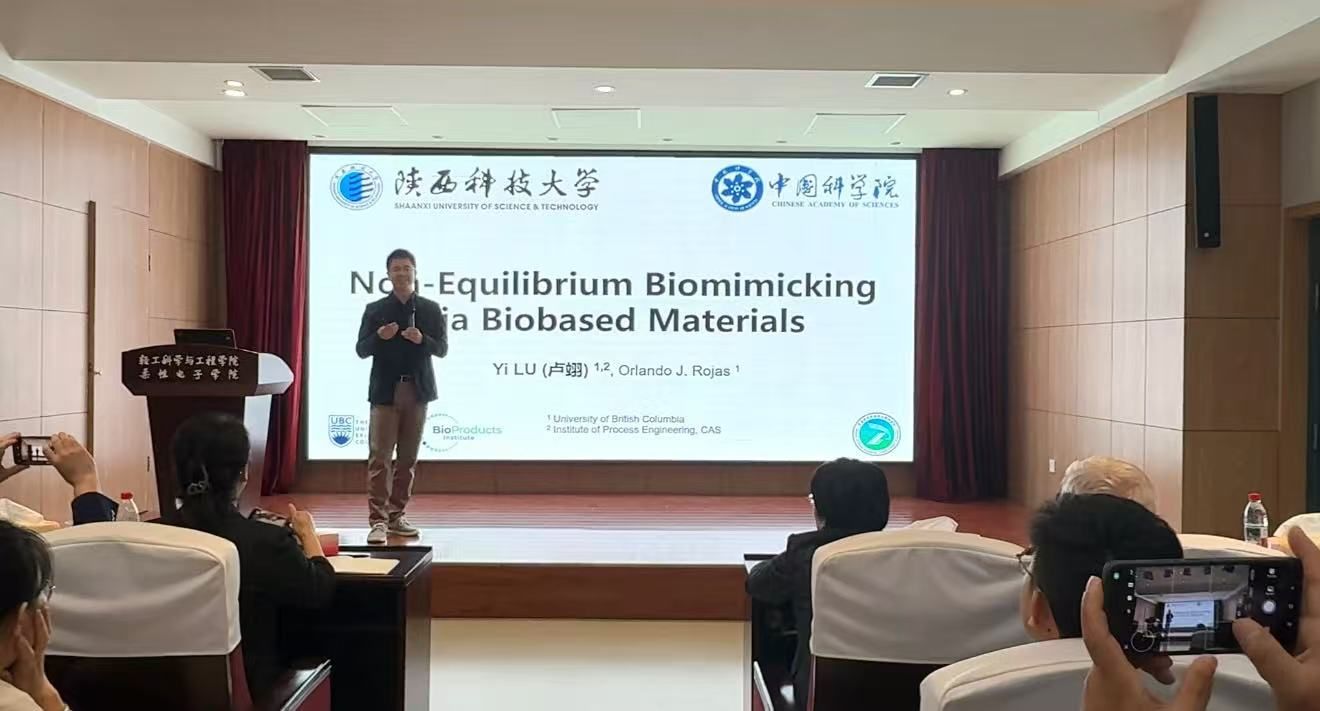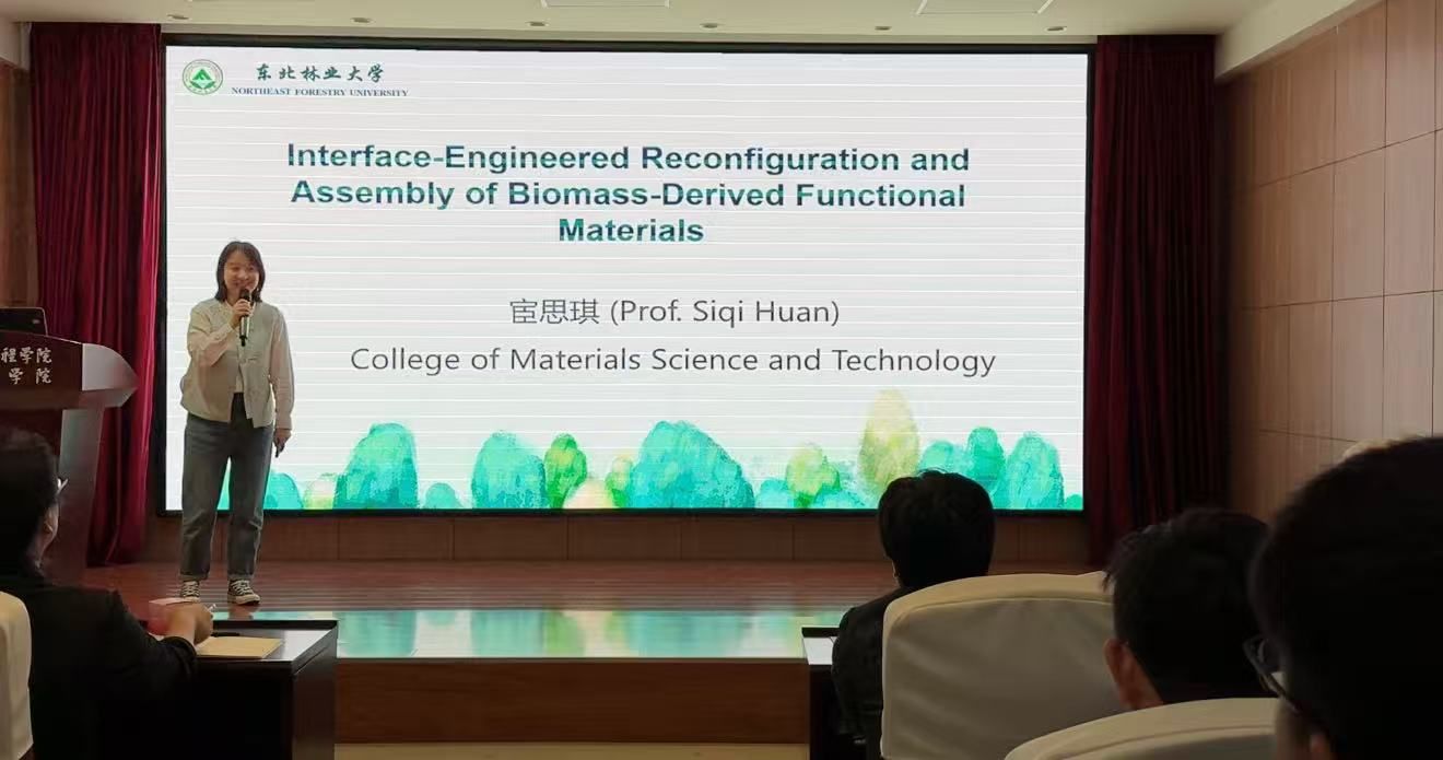 UBC畢然研究員介紹了具有定制功能的纖維素基薄膜創(chuàng)新制備策略,包括物理結(jié)構(gòu)構(gòu)建、化學(xué)改性和廢棄物再利用。展示了木質(zhì)纖維素在設(shè)計高性能、多功能材料方面的靈活性。UBC吳杰博士后介紹了通過生物煉制技術(shù)從木質(zhì)纖維素中獲取可持續(xù)生物產(chǎn)品的方法,并對生物精煉技術(shù)未來在提升轉(zhuǎn)化效率、降低成本及推動產(chǎn)業(yè)化應(yīng)用的發(fā)展展開了探討。中國科學(xué)院過程研究所盧翊研究員圍繞可再生資源高效轉(zhuǎn)化與綠色制造的前沿方向,闡述了如何利用生物質(zhì)組分膠體間非共價相互作用構(gòu)筑和利用非平衡態(tài)液液界面等。為開發(fā)兼具高效轉(zhuǎn)化率與高附加值的綠色新材料體系提供新理論方向與技術(shù)路徑。東北林業(yè)大學(xué)宦思琪教授通過利用界面工程策略,從富含羥基和復(fù)雜網(wǎng)絡(luò)結(jié)構(gòu)的纖維素和木質(zhì)素(生物聚合物)中通過液/液界面實現(xiàn)自組裝,形成乳液膠體,設(shè)計并制備出了多維功能材料??朔艘痪S材料中協(xié)同結(jié)構(gòu)-功能設(shè)計的長期難題。