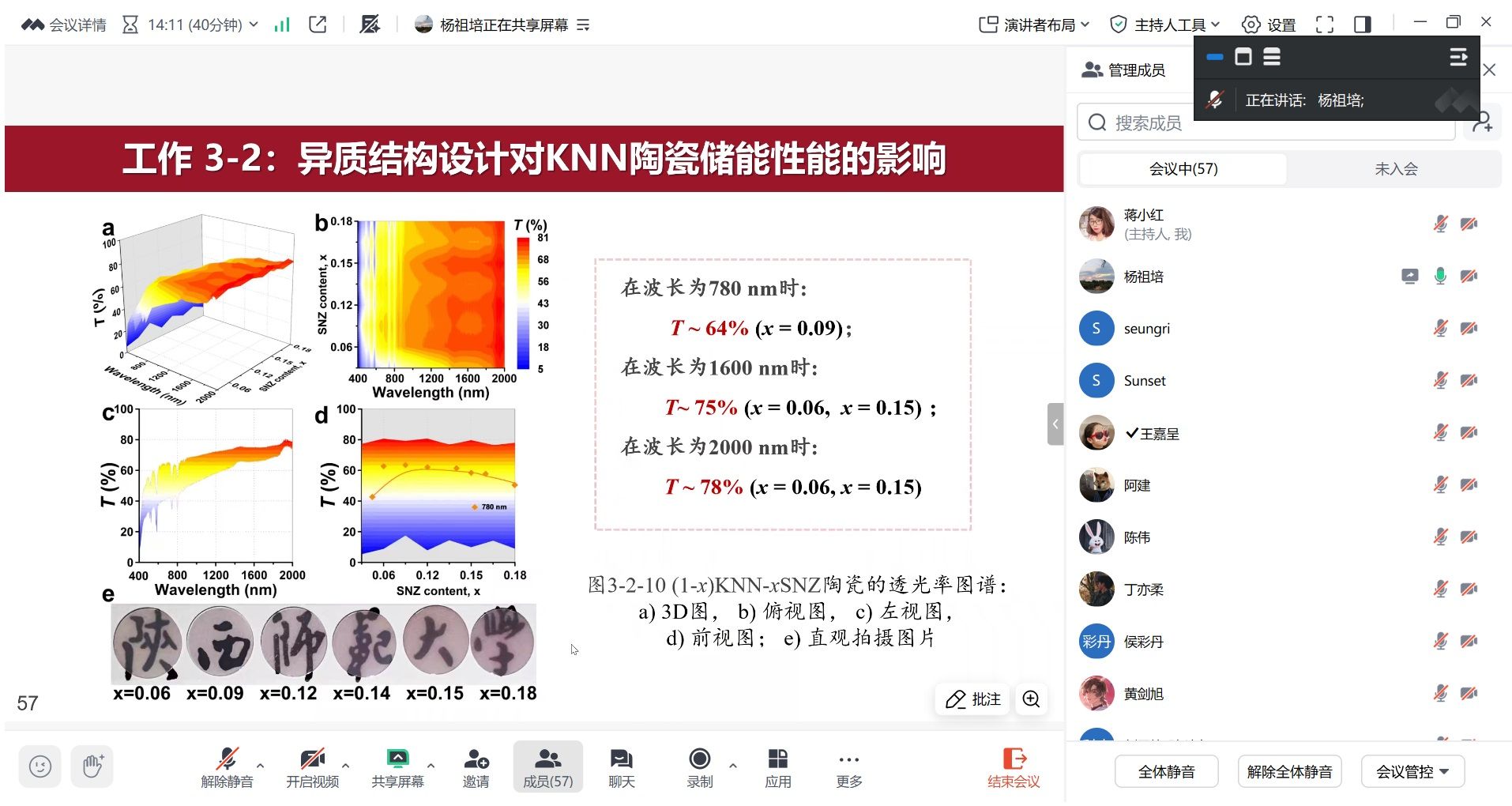 楊祖培教授的報(bào)告內(nèi)容豐富翔實(shí),邏輯清晰明了,使此次聆聽報(bào)告的師生對(duì)無鉛鐵電陶瓷儲(chǔ)能性能優(yōu)化有了深入的了解,對(duì)我校師生在相關(guān)領(lǐng)域科研工作的深入開展也具有很好的啟發(fā)性和指導(dǎo)性。報(bào)告會(huì)后,楊祖培教授與師生們展開了深入的交流討論,專業(yè)地解答了參會(huì)師生們提出的各類問題,并誠(chéng)摯的邀請(qǐng)與會(huì)師生在今后科研工作中多合作、多溝通。