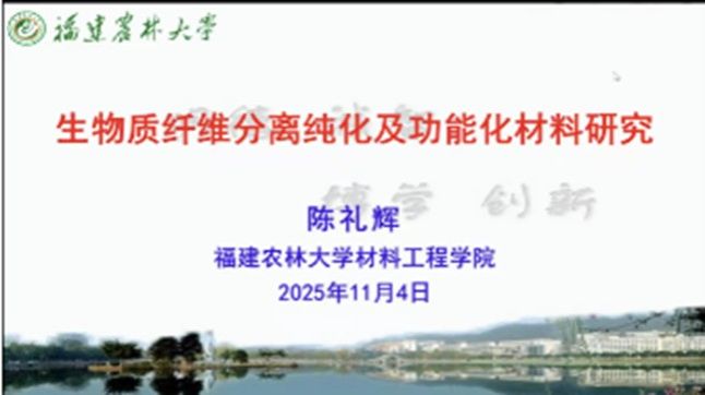 11月4日,應(yīng)科技處、前沿院及輕工學(xué)院邀請,福建農(nóng)林大學(xué)“農(nóng)林剩余物纖維素功能材料”科技部創(chuàng)新團隊負責(zé)人陳禮輝教授做客我?!扒把乜茖W(xué)報告”,作題為“生物質(zhì)纖維分離提純及功能材料研究”的線上學(xué)術(shù)報告。輕工學(xué)院相關(guān)專業(yè)教師、研究生參加報告會。