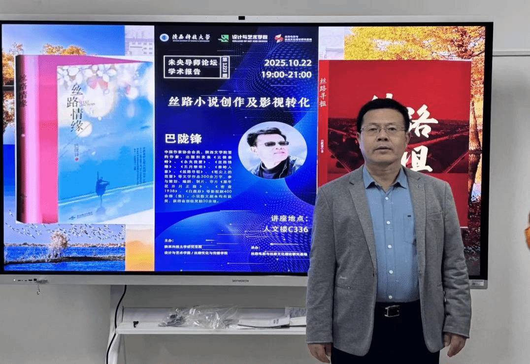 10月22日,應(yīng)設(shè)計(jì)與藝術(shù)學(xué)院和研究生院邀請(qǐng),陜西文學(xué)院簽約作家、二級(jí)編劇巴隴鋒老師做客陜西科技大學(xué)“未央導(dǎo)師論壇”,作了題為“絲路小說(shuō)創(chuàng)作及影視轉(zhuǎn)化”的學(xué)術(shù)報(bào)告。報(bào)告會(huì)由設(shè)藝學(xué)院副院長(zhǎng)吉平主持,學(xué)院相關(guān)專業(yè)教師和研究生參加了此次報(bào)告會(huì)。